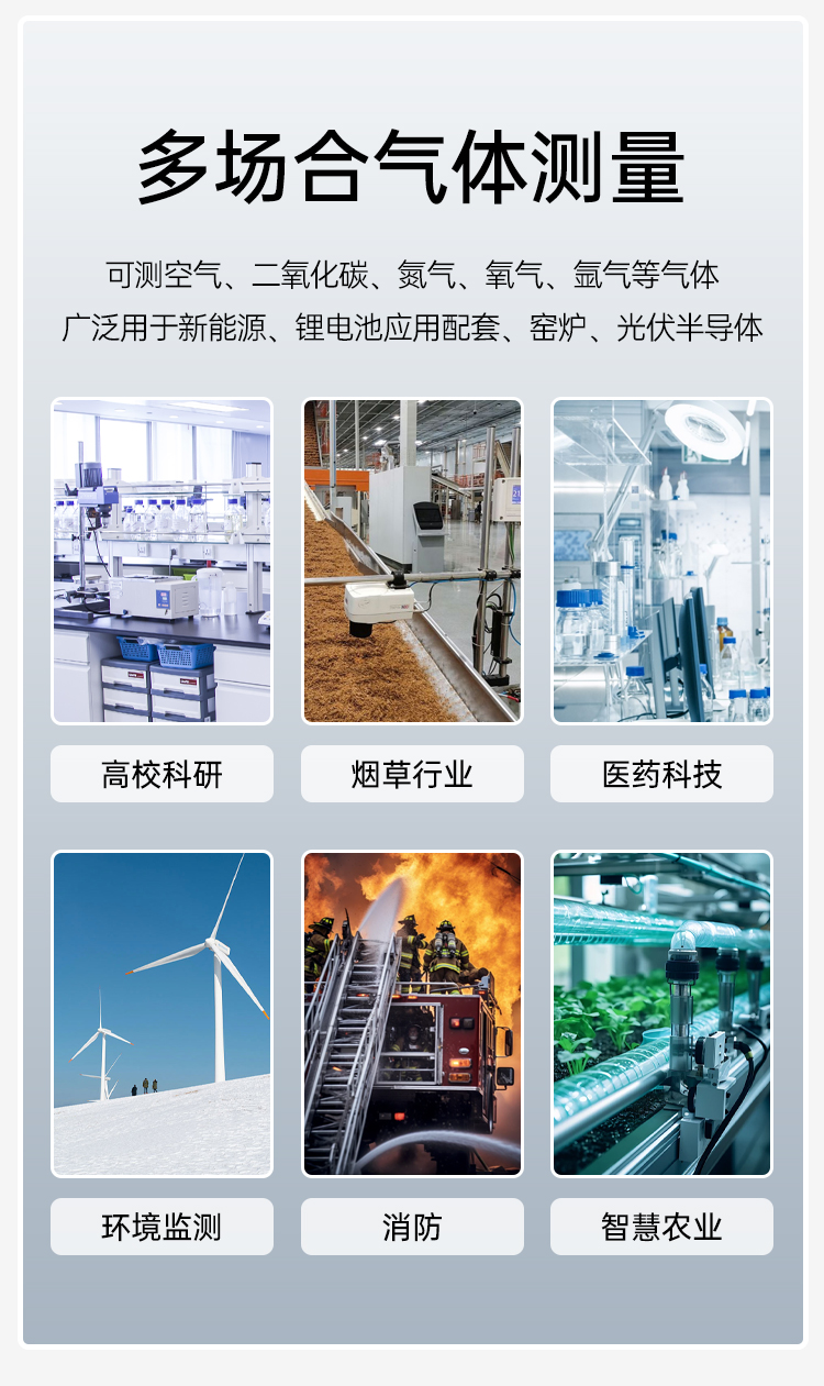 可測(cè)空氣、二氧化碳、氨氣、氧氣、氬氣等氣體廣泛用于新能源、鋰電池應(yīng)用配套、窯爐、光伏半導(dǎo)體