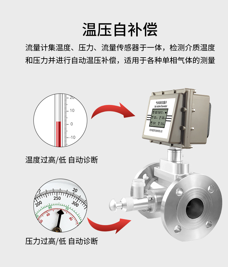 溫壓補(bǔ)償型氣體渦輪流量計(jì)集氣體渦輪流量傳感器與流量轉(zhuǎn)換器于一體,在流體的作用下,渦輪克服阻力矩和磨擦力矩開(kāi)始轉(zhuǎn)動(dòng)。當(dāng)力矩達(dá)到平衡時(shí),轉(zhuǎn)速穩(wěn)定,渦輪的轉(zhuǎn)速與氣體流量成正比, 并通過(guò)旋轉(zhuǎn)的發(fā)訊盤(pán)上的磁體周期性地改變磁場(chǎng),從而使脈沖發(fā)生器輸出頻率與流速成正比的脈沖信號(hào)。